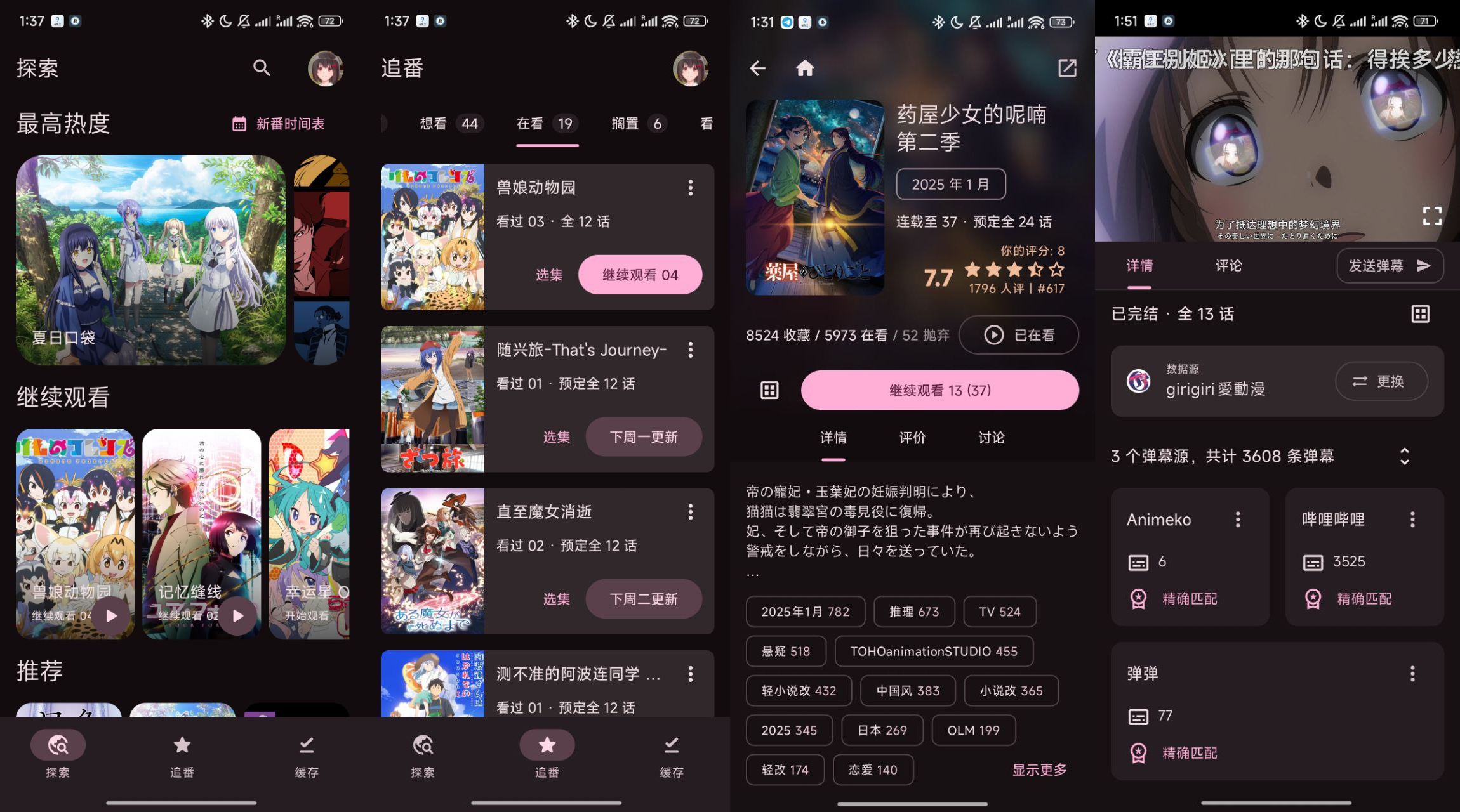 功能全面:支持弹幕、离线缓存、Bangumi云同步、收藏记录等