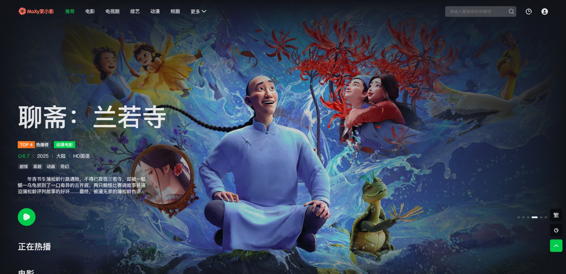 茉小影是一个功能完善、资源丰富的在线视频播放平台,目前收录了超过 77,740 部电影、剧集、综艺、动漫资源,以及 约 18,720 部短剧内容。网站所有影片均可直接在线播放,无需下载或注册,播放速度极快,清晰度高达1080P甚至更高,部分影片还支持多线路切换,保证观影流畅无卡顿。